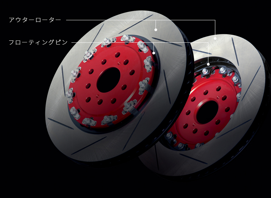 - WRX STI、GR86/86、BRZ のフロントブレーキローターはレーシングカーと同じフローティングタイプ