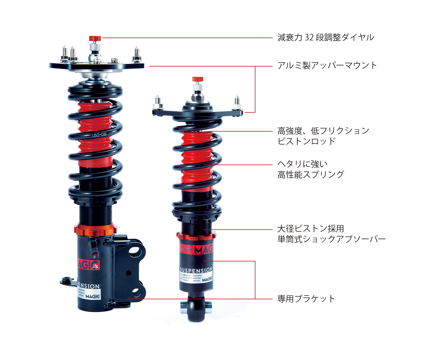 全長調整式・減衰力32段調整・アッパーマウント付の高性能フルキットを