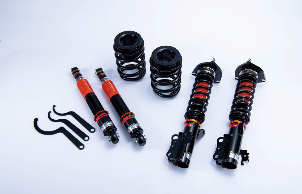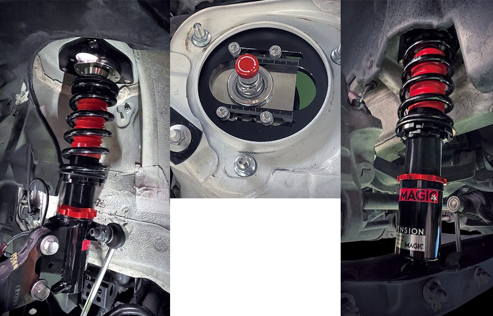 - ストラットタイプのフロントにはキャンバー調整式ピロボールアッパーマウント設定
